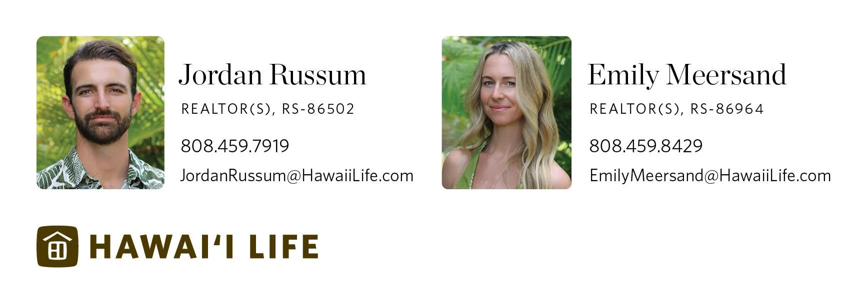 “Jordan and Emily are exceptional real estate professionals! Their deep knowledge of O‘ahu’s North Shore, combined with their dedication to personalized service, makes them a dream to work with. Whether you need property management or help buying or selling a home, they provide expert guidance every step of the way. Their professionalism and aloha spirit truly set them apart. Highly recommend partnering with them for all your real estate needs! Thank you!”